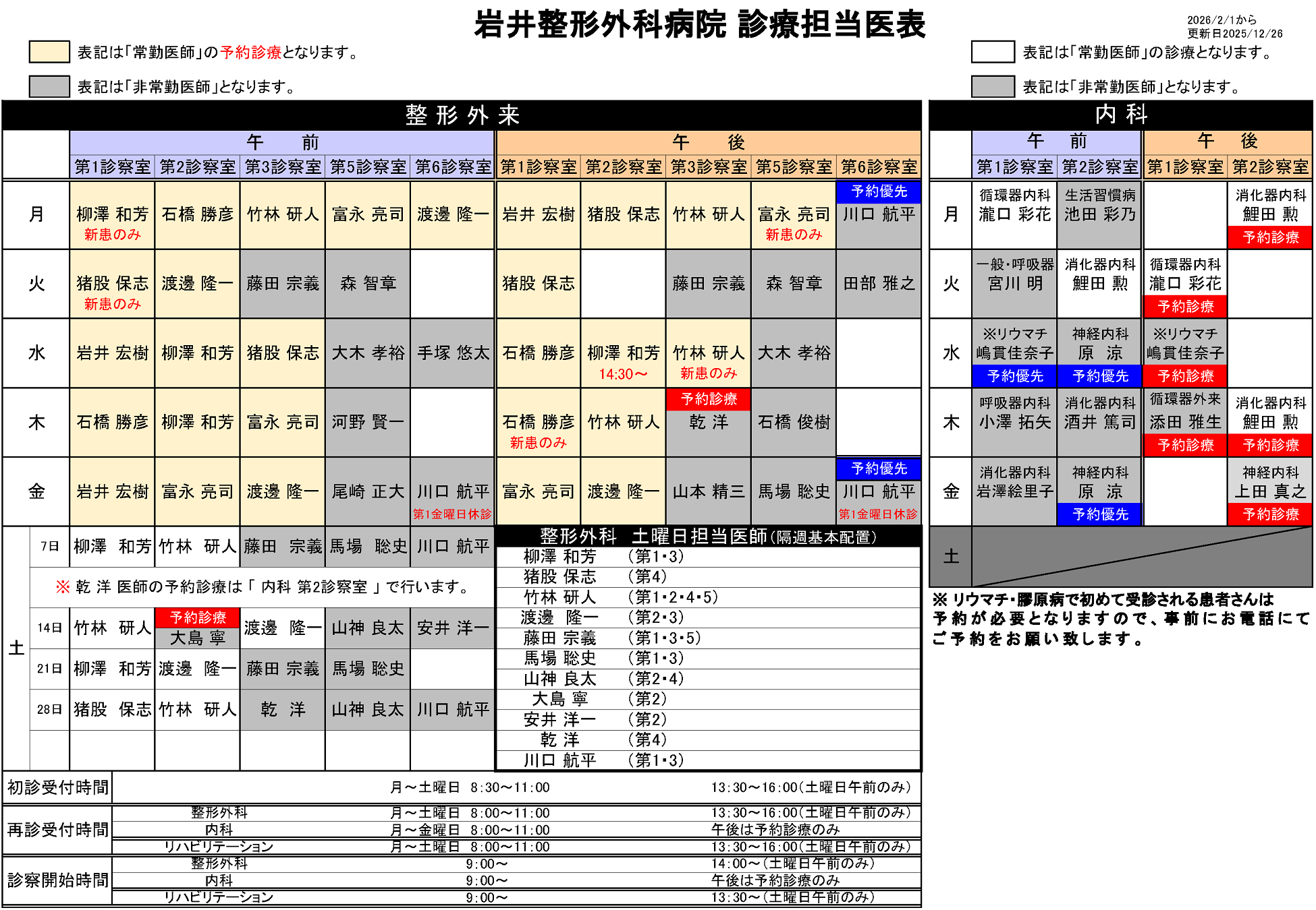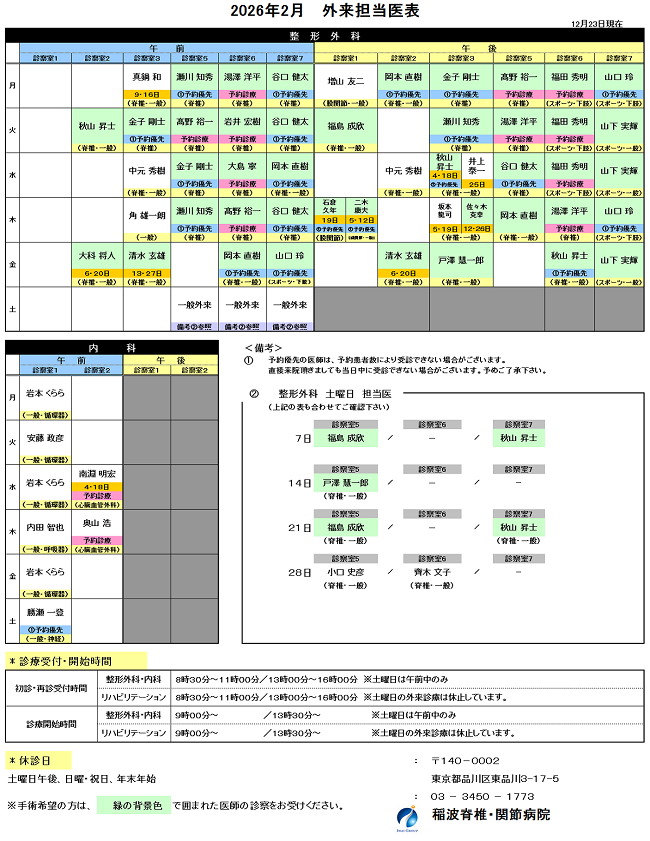 | 02月06日(金) 午前 | 整形外科 | 岩井 | なし | |