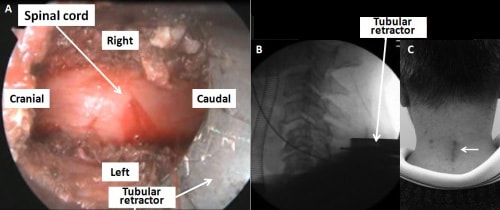 Cervical Microendoscopic Interlaminar Decompression through a Midline Approach in Patients with Cervical Myelopathy: A Technical Note. Oshima Y, Takeshita K, Inanami H, Takano Y, Koga H, Iwahori T, Baba S, Tanaka S. J Neurol Surg A Cent Eur Neurosurg. 2014